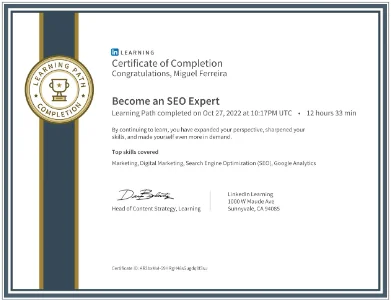 To complement my academic path, I have earned over 30 professional certifications. Among the most relevant are Advanced SEO, Google Ads, and Artificial Intelligence applied to Marketing. These enable me to apply updated and efficient methodologies that align with market best practices.